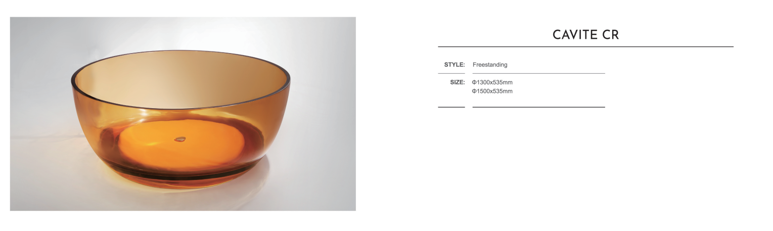 - Nếu gia chủ đang tìm kiếm một sự phá cách trong thiết kế bồn tắm thì phiên bản bồn tắm trong suốt của Cavite là một sự lựa chọn đáng để xem xét. Với hình dáng tròn nổi bật, Cavite mang lại một vẻ sang trọng cho khôn gian.
